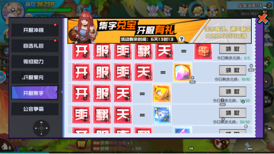 一. 开服活动-集字兑换活动-挂机10分钟即可兑换上千元免费大礼(包含彩钻,机甲升级碎片,切割材料等)