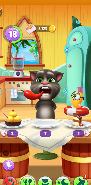 新增秋千、蹦床、篮球、沙包等趣味玩具,汤姆猫可以在户外尽情玩耍,搞怪动作和搞笑反应让养成过程充满欢乐!