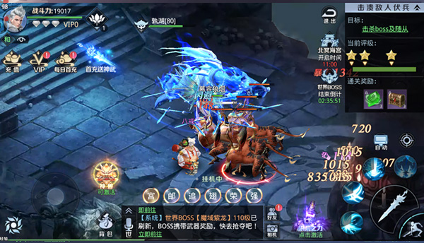 4、丰富日常活动与高爆率副本全天开放,支持智能挂机自动刷怪、自动拾取、经验加成。上班上学不耽误,随时随地轻松升级,修仙更省心;