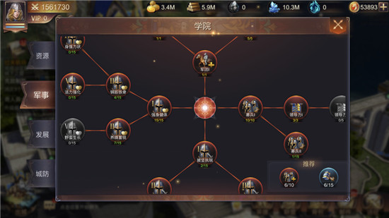 学院可研究多种多样的科技,共分4大类,分别是资源、军事、发展、城防。在科技研究完成之后,研究的某些方面会获得提升,比如研究兵种的防御与攻击,研究完毕之后,所有的该兵种都会得到防御与攻击力的提升!