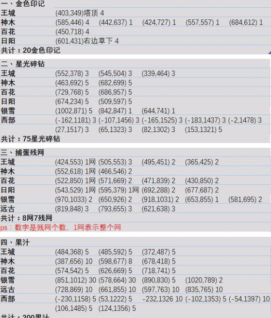 前期用好你的真视之眼,这游戏各个地方会出什么是固定的,真眼每天有8次,而有很多材料都可以通过真眼获得,但是同一个地方只能获取一次,如果你全找完了那就后面就没有了。这里附加真眼的坐标图。