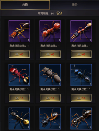 想要轻松拿到紫色蚂蚁吗?——那就要注重完成物竞天择活动,可以用完成任务所积攒的积分进行兑换,快速获得心仪的紫色蚂蚁。