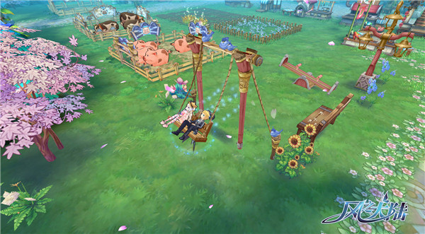 8、装上双人秋千、跷跷板后,再种上鲜花和树木,就可以和小伙伴一起玩耍了。(/≧▽≦)/