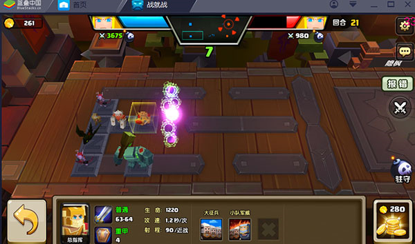 游戏以精美的游戏画风和精致的人物建模为特点,玩家可以选择自己的阵营英雄进行对战,合理的派兵布阵运用自己的策略与智慧进行战斗