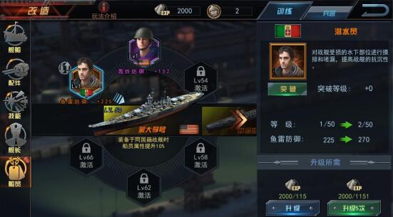 3、消耗船员经验升级可以提升属性,橙色船员可以消耗老兵勋章突破,突破后提高等级上限和属性成长,已经升级和突破的船员解雇后会返回全部的升级、突破材料