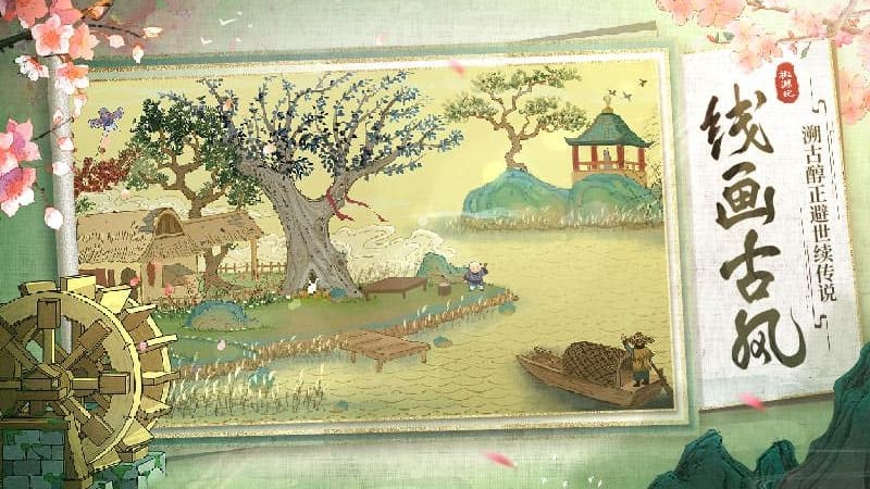 游戏首创"四季水墨渲染"技术,春日桃林会随真实时间呈现"初绽-盛放-凋零"的全过程,冬雪覆盖建筑时自动生成留白效果,让整个桃源如同会呼吸的立体山水画卷。