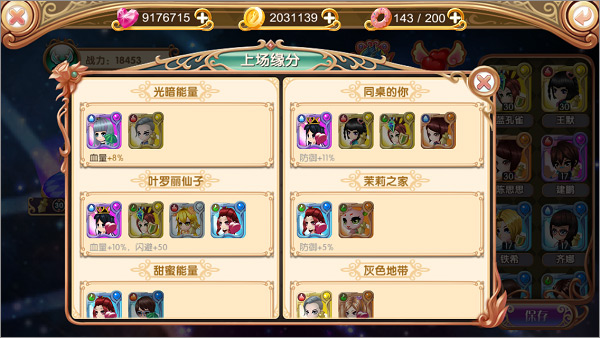 切记,只有缘分关系里的角色都上阵才能激活该缘分的加成哦!