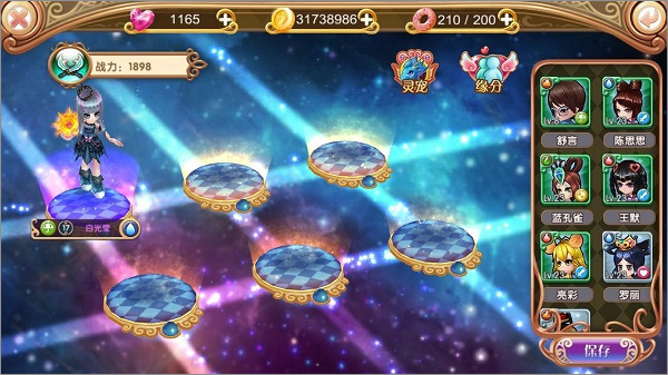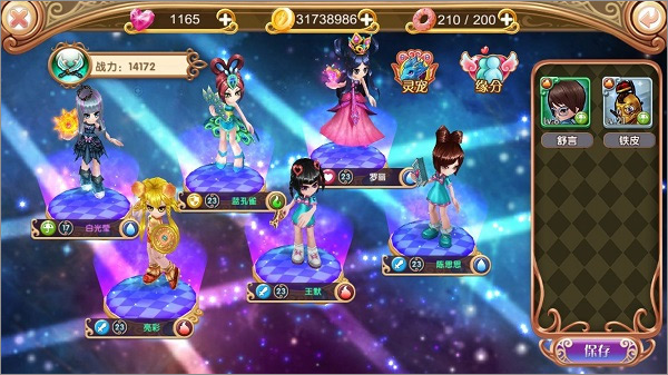 通过界面右侧标签可知,叶罗丽手游根据四种职业定位对角色们进行了分类,分别是攻击、防御、治疗、辅助。