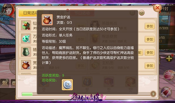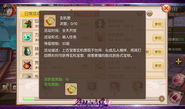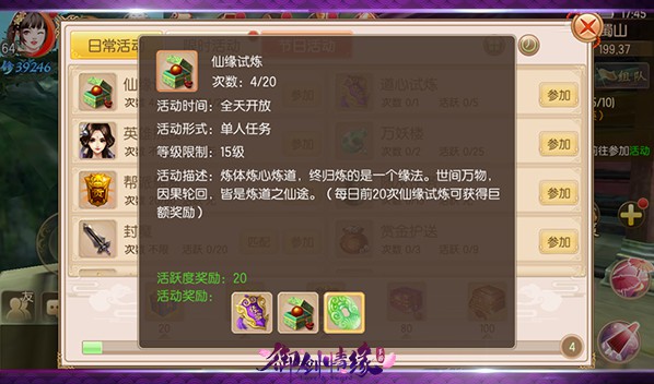 仙缘试炼每天参与两轮可获得大量经验,每轮分10个小任务,任务经验逐渐增多。