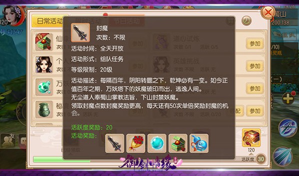 2、队长带队封魔,可以获得额外经验、道具奖励。