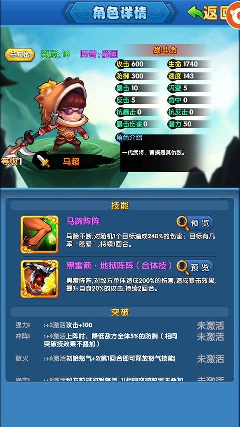万众瞩目首次十连必产武将,最少能得一个,次三位前期刷本也是必备的,马超肉盾外加强晕控制,黄忠打单体,各种一箭一个,郭嘉更是群体输出的一把好手。