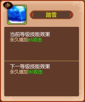 5、踏雪(辅助技能):可以增加很多攻击,配合主技能炉火纯青可以在前期打出一定的伤害 。
