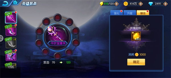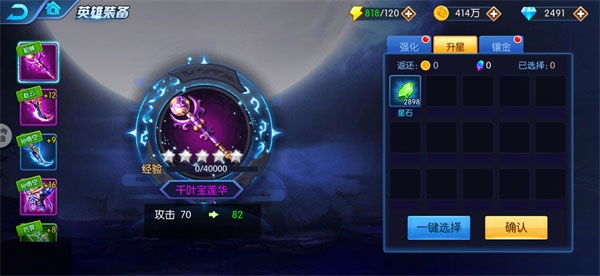 2、装备升星。消耗星石可提高装备属性,装备品质越高,消耗的星石越多,但属性提升也越多哦!