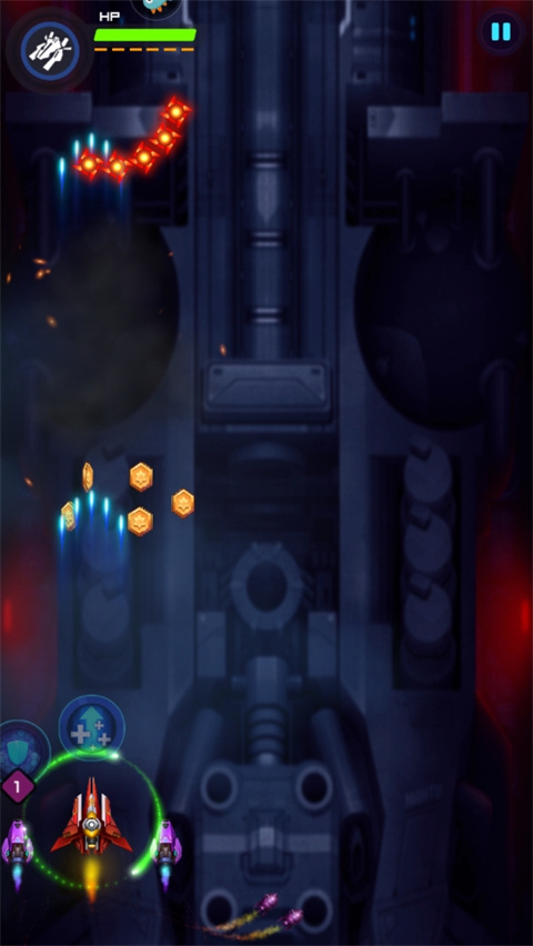 4、松开屏幕游戏自动进入子弹时间,这是可以放技能清理地方飞机或者给己方飞机加血加盾;
