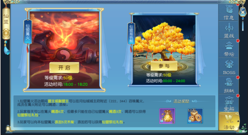 16.仙盟活动可在活动开放时,由仙盟盟主及副盟主选择是否开启。