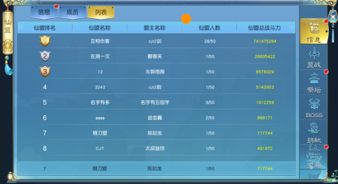 4.仙盟成员战力决定仙盟战力,仙盟战力决定仙盟排名。