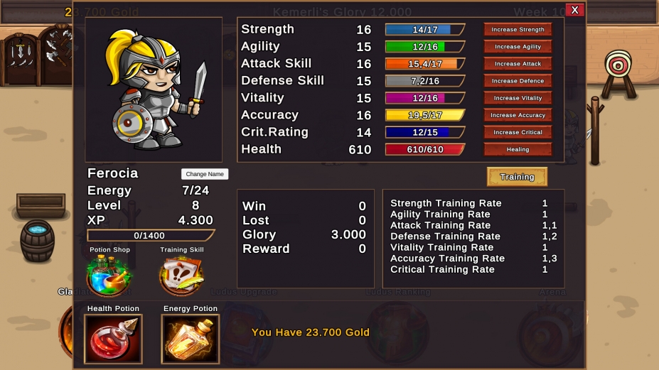 2.选择不同类型的角斗士,如剑士、盾战士、弓箭手等,每种角色都有独特的技能和武器。
