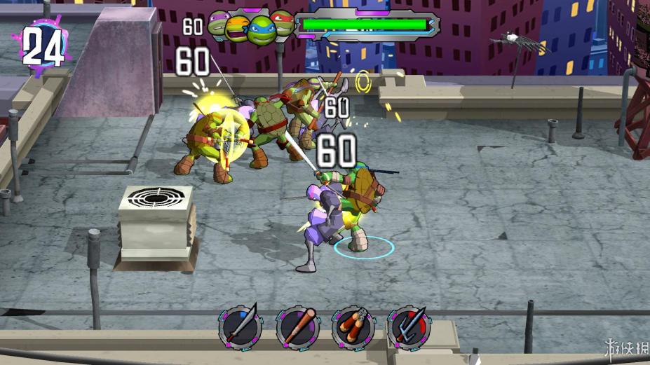 2.使用每只神龟独特的技能和武器,进行华丽的连击和组合攻击。