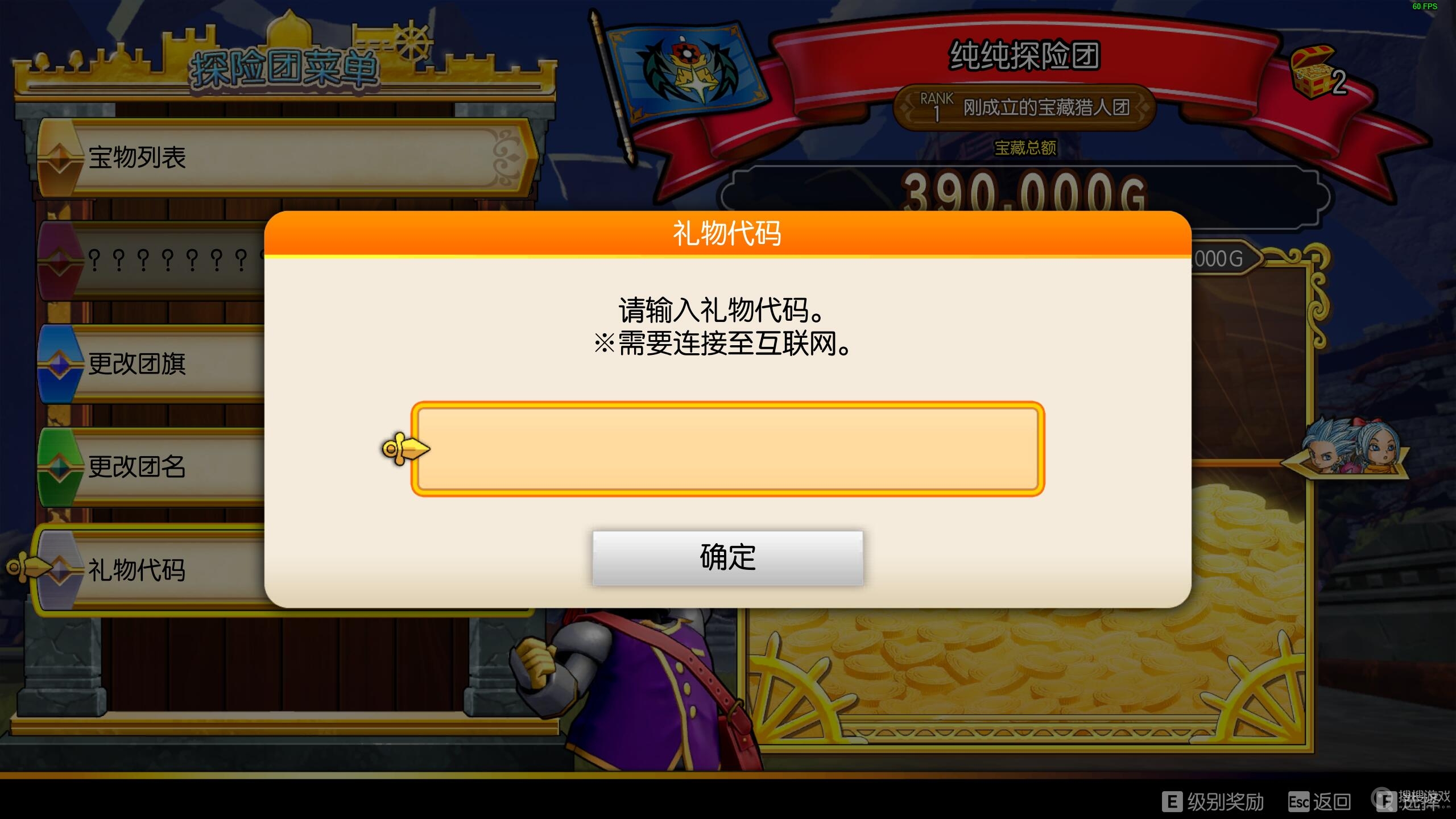 完成第一章解锁探险团菜单后可以在里面选择最后一个礼物代码