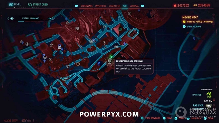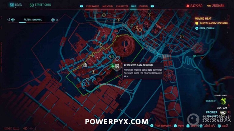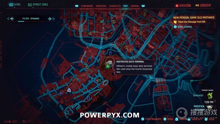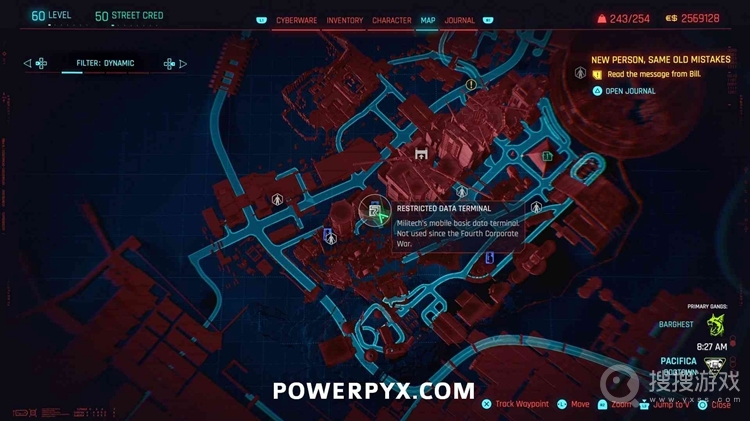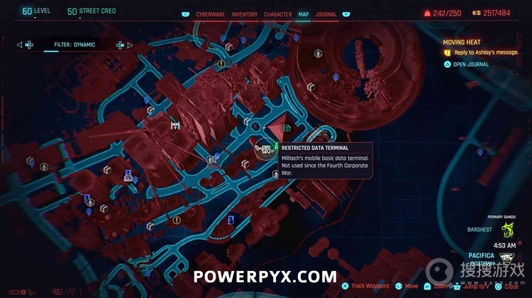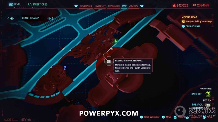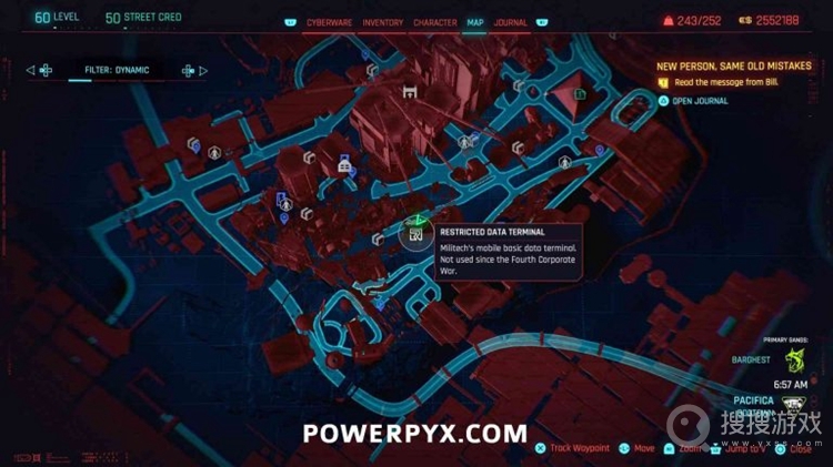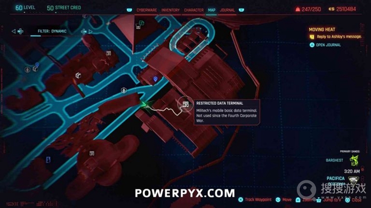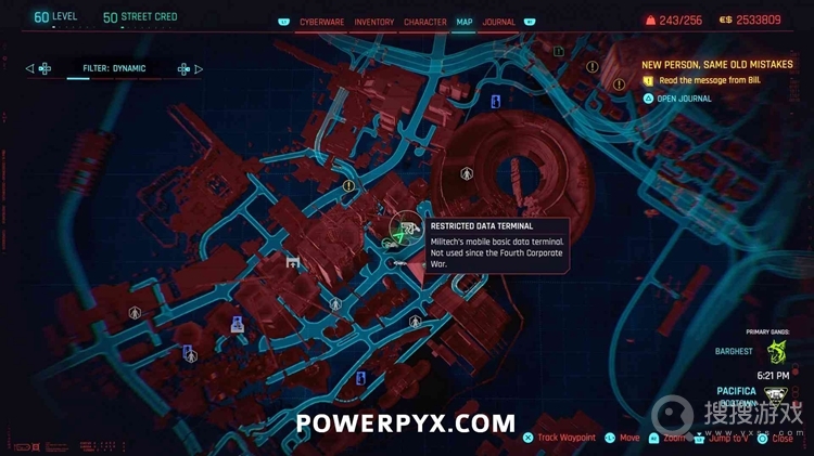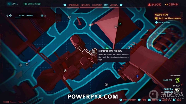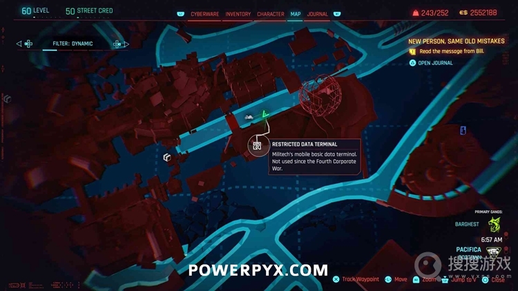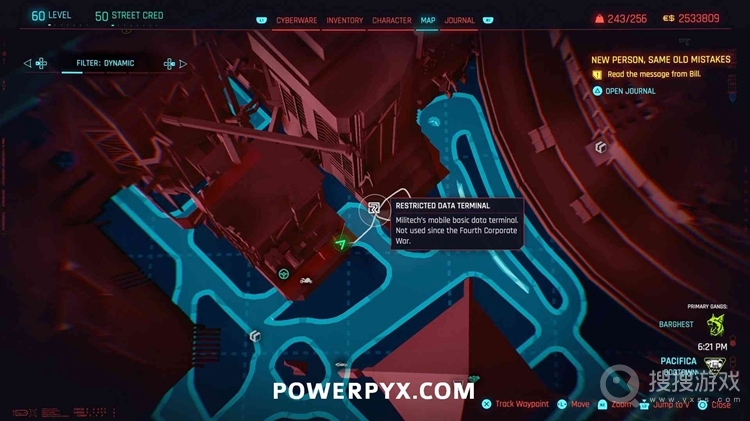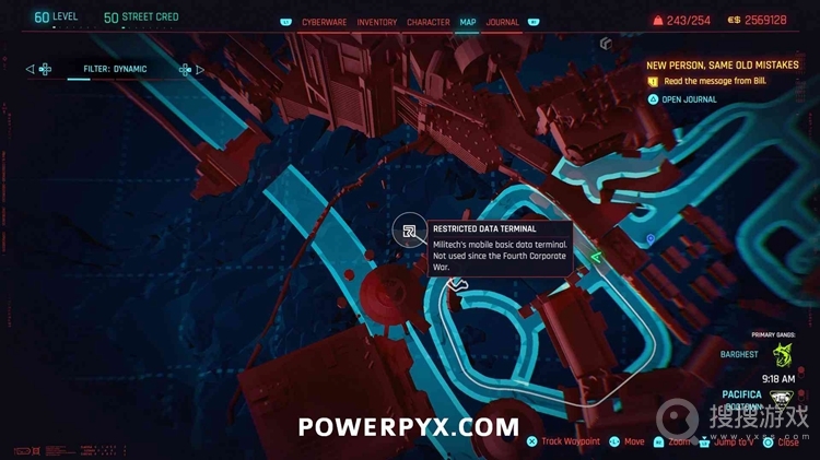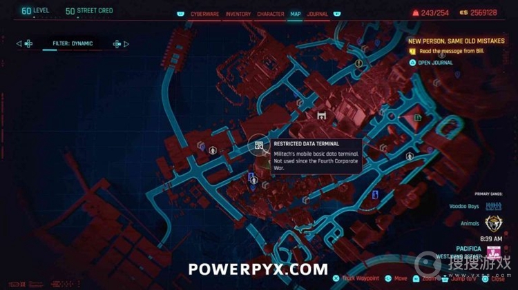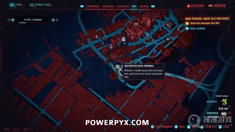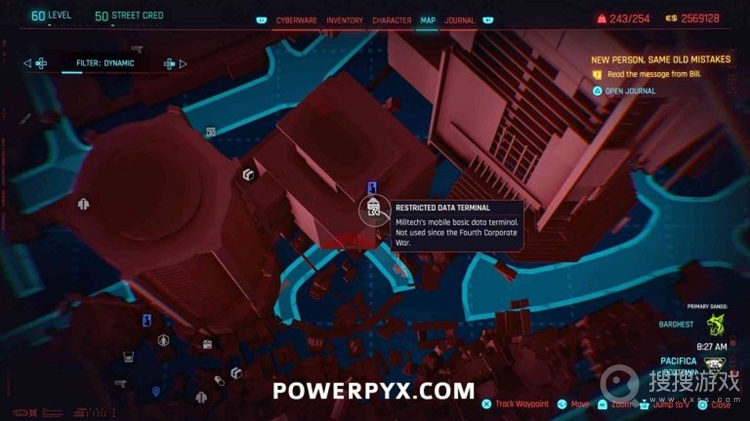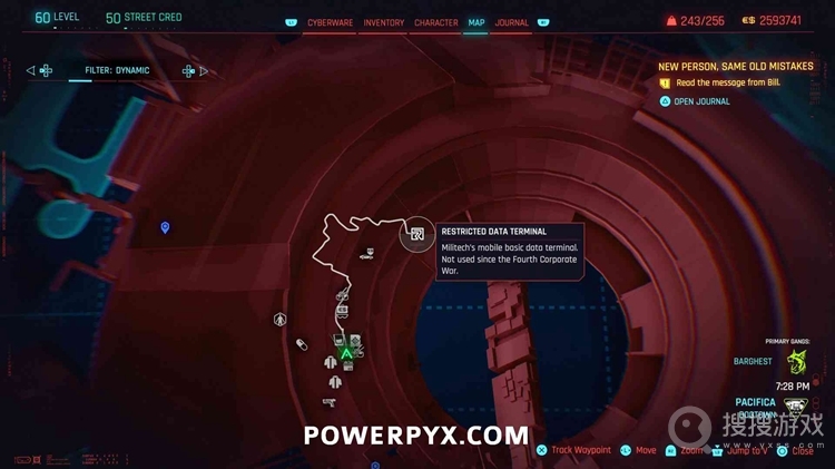 从“克雷斯街”数据术语稍微向南行驶,找到一个“犯罪活动增加”图标(将在地图上用绿色图标标记)。进入这个敌人基地,穿过隧道,直到你到达一个有很多敌人的房间。在上锁的房间内的左侧是数据终端。如果你的身体属性足够高,你可以强行打开门,或者你可以从上锁的房间打开楼下的地板板条箱,然后放下板条箱,沿着通风口,直到你到达一个通往上锁房间的梯子。