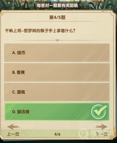 千帆上将-哲罗姆的猴子手上拿着的是什么物品? 正确答案:望远镜