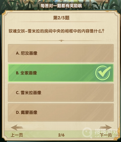 驭魂女妖-雪米拉的房间中央的相框中展示的是什么内容? 正确答案:全家画像