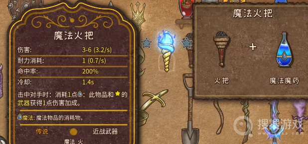 火把点燃后,会变为燃烧火把,其伤害和效果都会得到增强。