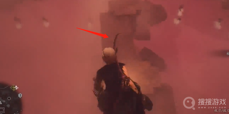 在吧台左转后,沿着旁边的路径绕上来。你会遇到一个可穿行的墙壁,一直走到尽头后向右跳跃。