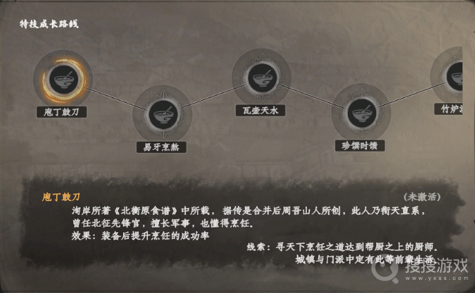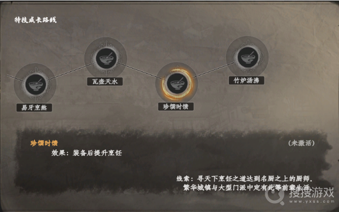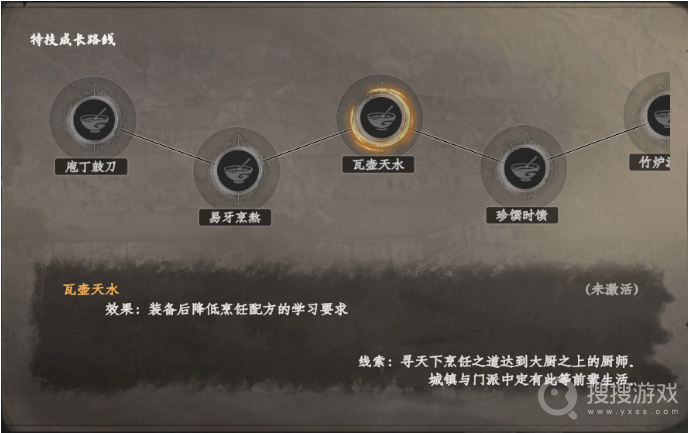 瓦壶天水:装备这一特技后,玩家学习烹饪配方的要求将大幅降低。这意味着你可以更快地掌握新的菜品制作方法,丰富你的烹饪菜单。