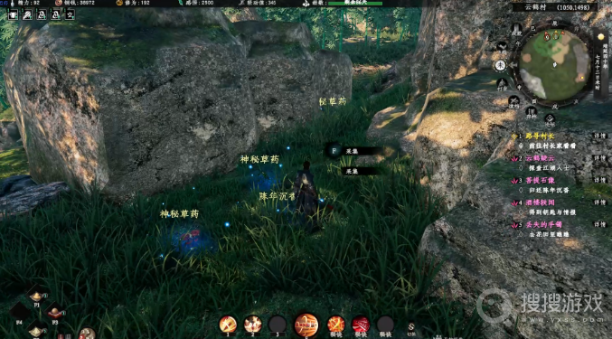 深入村中铁匠王铁家的后院,你遭遇了四个江湖人士,经过一场激战,成功采集到了珍贵的陈年沉香(坐标1050,1498)。