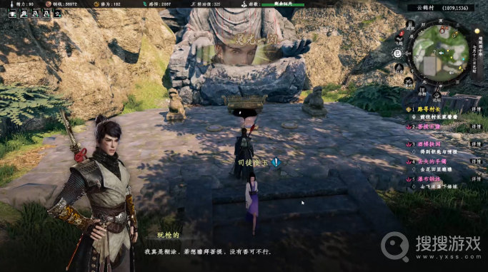 踏入云鹤村,走向中心佛像处,与NPC永觉(坐标1077,1530)展开深度对话,触发名为“菩提石像”的神秘任务。