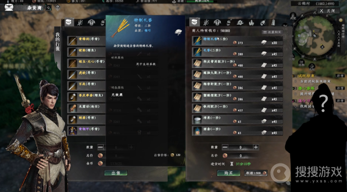 你带着陈年沉香返回杂货商处,交付后任务圆满完成。此时,你发现杂货商的商品中新增了特制礼香,果断购买以备不时之需。