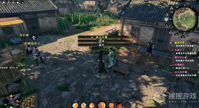 你立刻前往金光圃,发现一些村民在草垛旁(1134,1461)鬼鬼祟祟。经过询问,你得知他们正是偷手镯的人,而且手镯被藏在了桔子堆中。你迅速采取行动,与他们展开了一场激战。