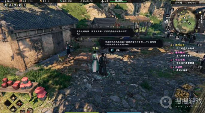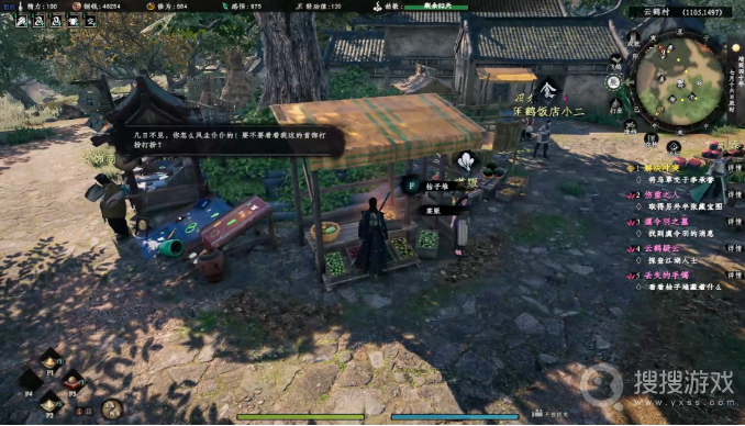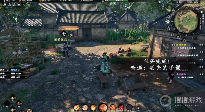 战斗结束后,你前往云鹤村的桔子堆货摊(1082,1499),经过一番搜寻,终于找到了那个丢失的手镯。