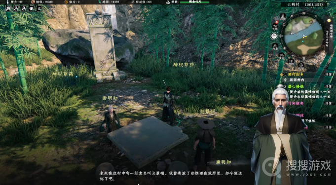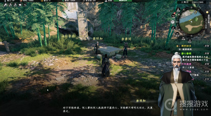 1. 任务的起始:在云鹤村外的清然林中,偶遇崇明知与他的弟子正在进行一场棋艺的对决。你决定加入他们,于是这个任务就这样开始了。