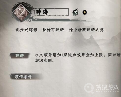 碎涛,让你在流血效果上更胜一筹;破浪,则让你的攻击更加致命。每十次攻击,都可触发破浪击,血葬效果,让敌人在流血中走向灭亡。而领悟这两大秘技,只需满足一定的条件,它们便可成为你手中的利刃。