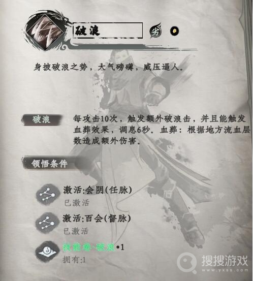 领悟条件:激活-会阴(任脉),激活-百会(督脉),技能卷·破浪