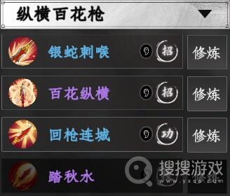 此秘技在造成伤害时,具有冻结敌人的能力。当百花纵横的第一次攻击命中敌人时,将附加冻结效果,使敌人被冻结一秒。领悟此秘技需要枪棍技能达到400,同时悟性也需要达到100。