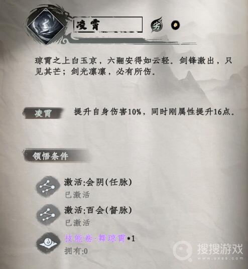 领悟条件:激活-会阴(任脉),激活-百会(督脉),技能卷·舞琼霄