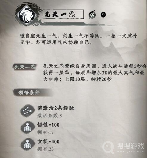 领悟条件:需要完整激活任意2条经脉,并且施展者的悟性达到100,玄机达到400才能领悟此秘技。