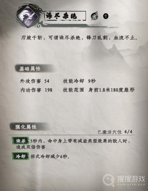 诛杀:若敌人已受到减益效果,此招的伤害将翻倍。