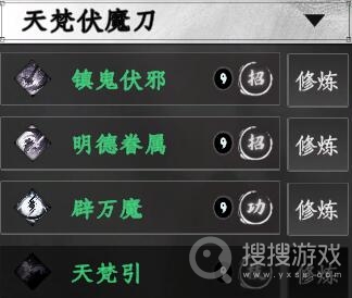 天梵伏魔刀,昭月门独步武林的绝技,专修内功,以正气克邪,其内含两式刀法、一体功法和一秘传技艺。