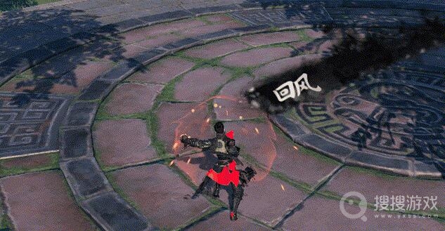 此招以扇形和直线攻击结合,首先对身前1.1米范围内100度的扇形区域内的敌人造成三次伤害,随后再以直线方式对身前3米范围内的敌人造成一次伤害。其伤害属性同样以外攻为辅,内功为主,基础外攻伤害16,内功伤害110。每次施展后,同样需要15秒的冷却时间。
