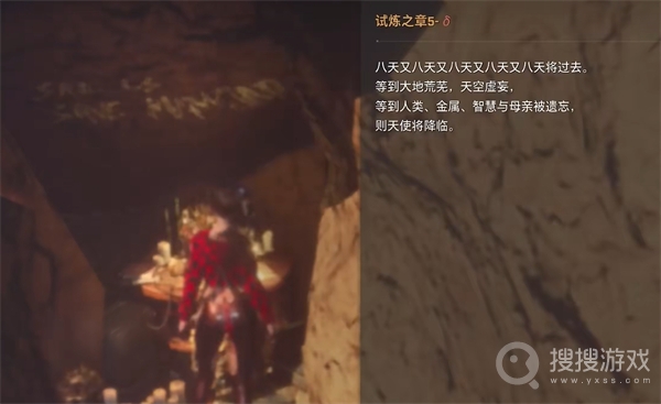 前行途中,右侧一隐蔽山洞映入眼帘。洞内设有桌椅,似乎曾是某人之所。细细探索,试炼之章5-δ便在其中。