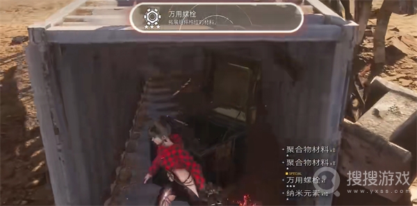 走近一瞧,集装箱上竟有一个不小的缺口,里面似乎藏着什么秘密。小心翼翼地探入其中,果然发现了一个宝箱。迅速打开,里面藏着珍贵的万用螺栓等物资,心中一阵欢喜。