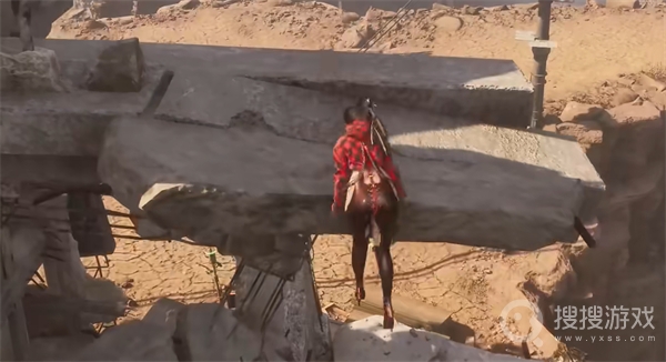 获得宝箱之后,我们继续向上攀爬。这里的地形崎岖不平,充满了挑战。我们需要巧妙地利用地形,时而攀爬墙壁,时而借助横杆前行,仿佛在进行一场刺激的跑酷冒险。