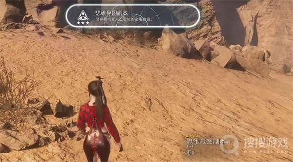 从岩石的上方,经过几次连续的跳跃,成功抵达对岸。刚一到,就遭遇了一只掉宝怪,我们果断出手将其击败,从中获得了一份思维导图副本。