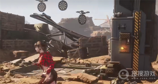 在尸体旁,有座可交互的塔。与其互动后,会出现三个标靶。我们只需用枪轻松击碎它们即可。