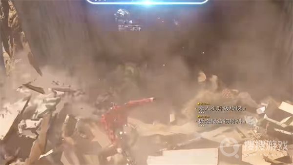手握饮料,我们转向一旁堆积如山的箱子。挥剑砍去,箱子纷纷碎裂,无人机升级模块等材料从中掉落出来,为我们接下来的冒险提供了宝贵的资源。