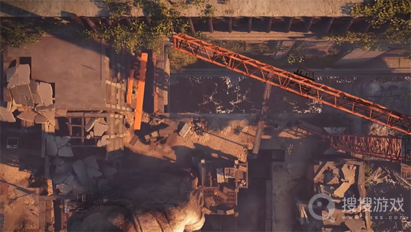 从大楼中走出,对面即是先前进入时的补给基地。此时可以前往休整一番,补充体力。此外,附近还有一台起重机控制器,只需将起重机的左侧吊放至指定位置即可。